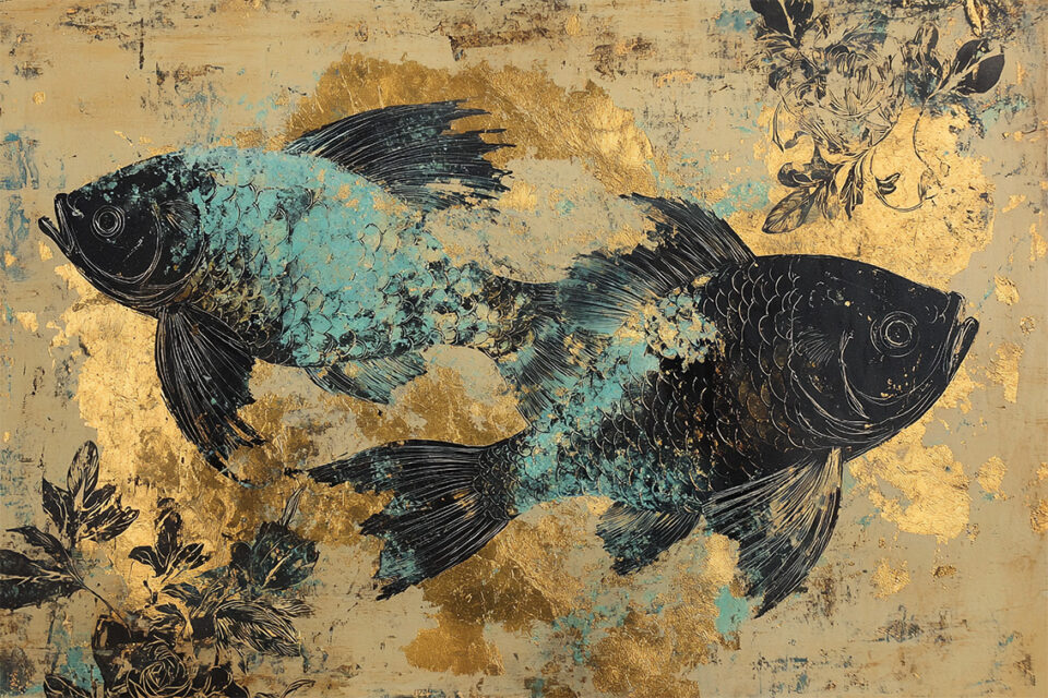 Seule subsiste une trace dorée dans le sillage mêlé de leurs formes enlacées. Quelque chose s’est écrit. Fragile. Lumineux.