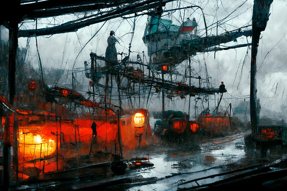 Cette œuvre numérique « Fragments d’âme », représentant un visage délicatement enchâssé dans des textures qui évoquent le bois érodé et la rouille, captive par son mariage entre une esthétique poétique et des éléments visuels bruts. Les couleurs patinées – des tons bleus, rouilles et dorés – créent une richesse chromatique qui contraste avec la netteté lisse de l’image numérique, jouant sur l’illusion d’une matière texturée et vieillie.