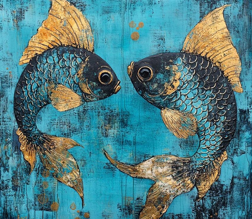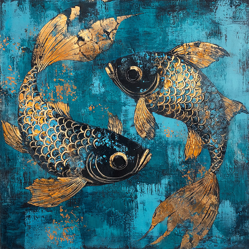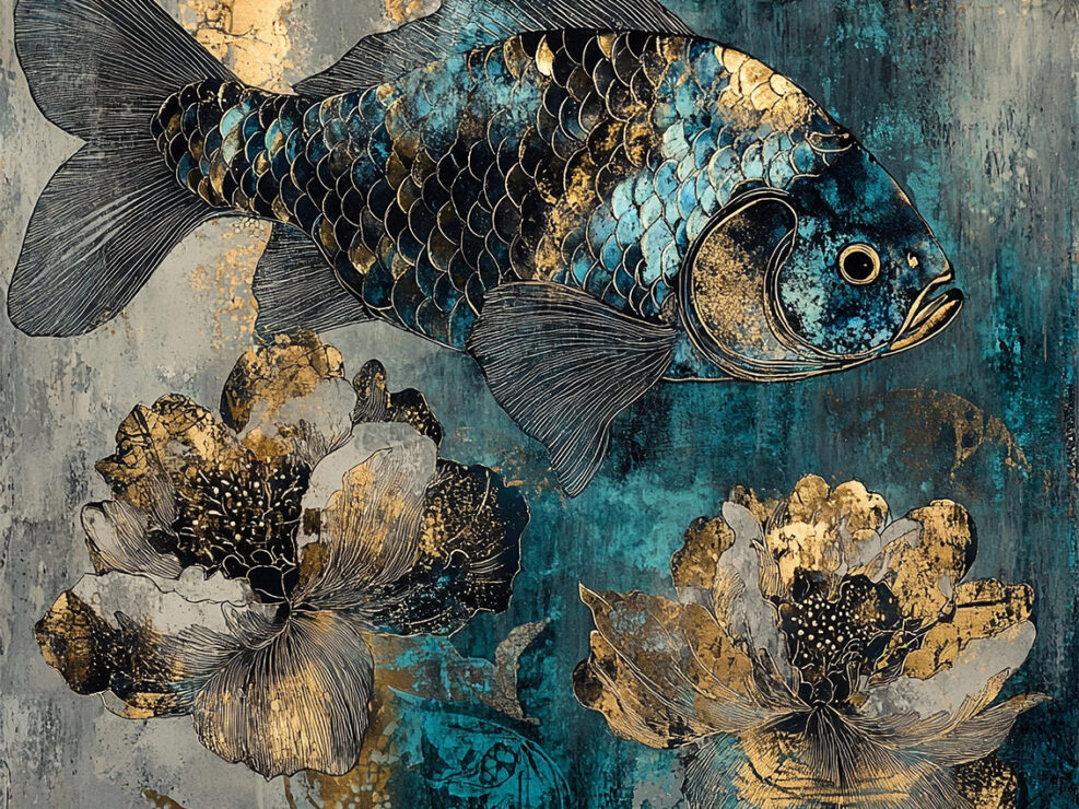 Mêlant art numérique et textures métalliques, cette série crée un équilibre subtil, intime et délicat, jouant avec les nuances dorées et turquoises pour une poésie visuelle et tactile.