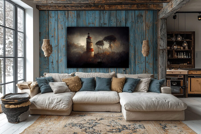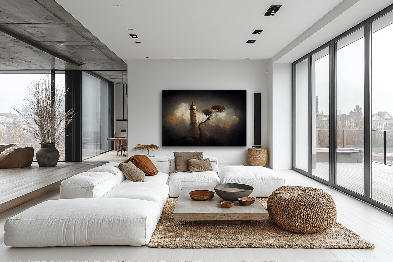 Avant même d’y apposer une œuvre, je façonne des environnements singuliers, chargés d’atmosphère. Du chalet en pleine nature au loft urbain, en passant par des intérieurs contemporains, épurés ou chaleureux, chaque espace est pensé comme une rencontre entre l’art et l’architecture. Ces compositions permettent de découvrir mes créations dans des cadres variés, authentiques et inspirants.