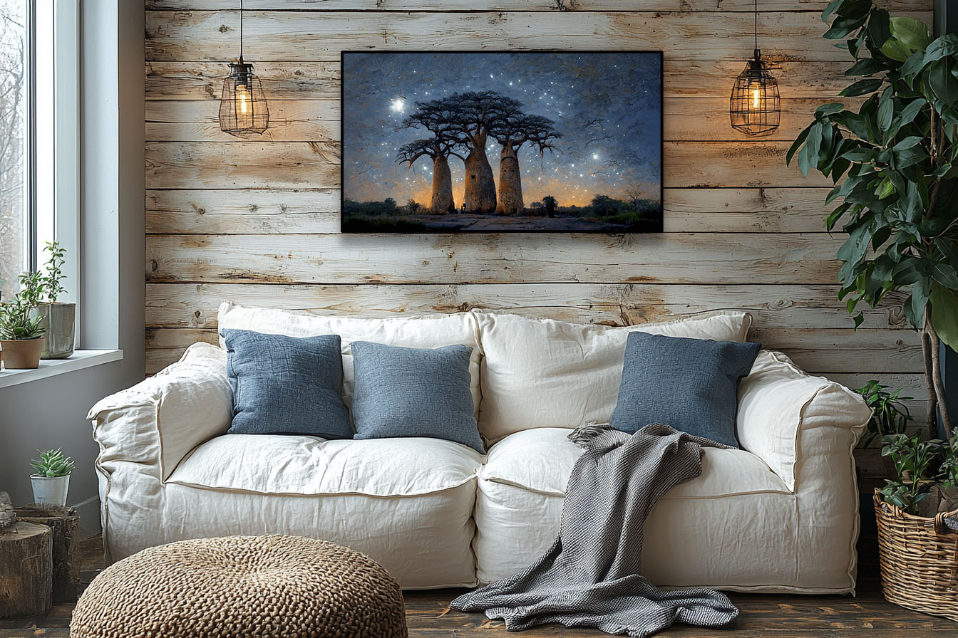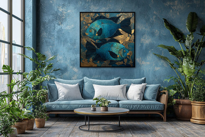 Je souhaitais présenter ici une autre facette de mon travail : l’intégration de mes œuvres dans des espaces intérieurs conçus pour susciter une véritable expérience visuelle et émotionnelle. Cette approche prolonge ma démarche artistique, où chaque scène devient une toile en soi.