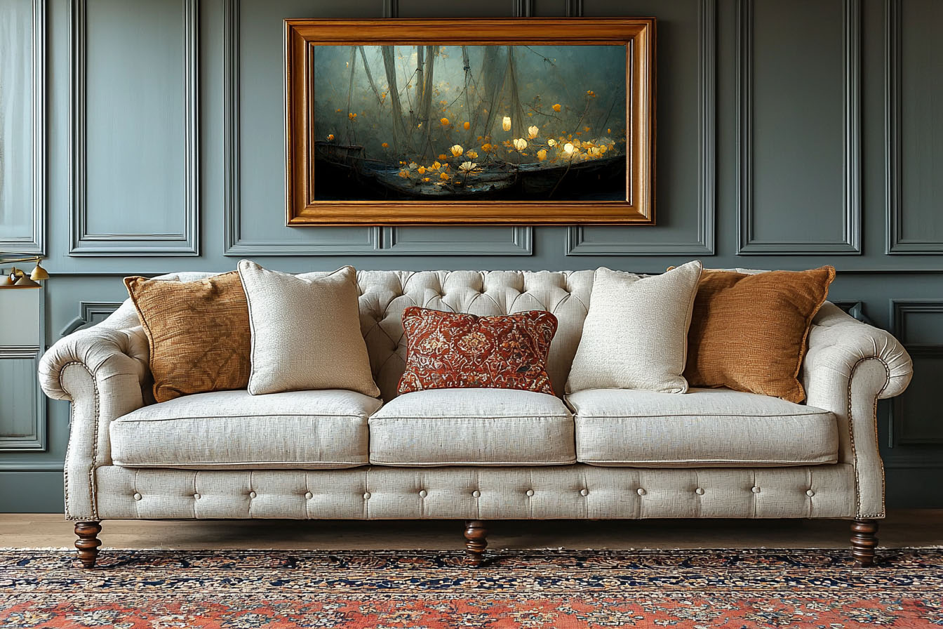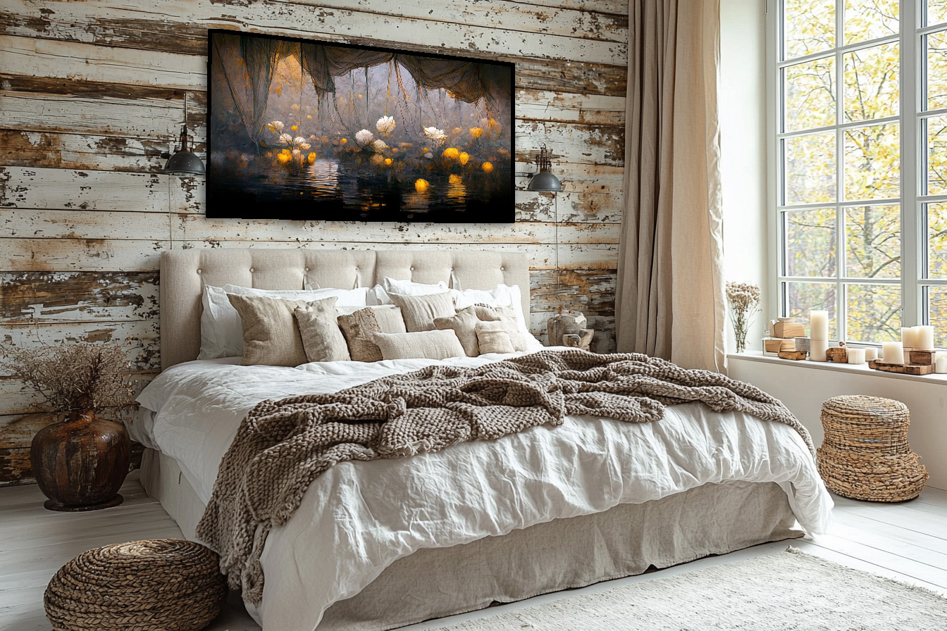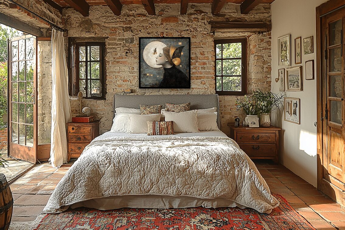 Lorsque l’œuvre prend enfin place, elle dialogue avec son environnement, se fondant dans l’espace ou s’y imposant subtilement. Le contraste entre la douceur des médiums satinés, la simplicité des cadres et les teintes apaisantes des intérieurs renforce l’émotion et la profondeur de chaque pièce. Ces mises en situation transforment l’atmosphère, créant un univers intime, propice à la contemplation et à un art de vivre empreint de sens.